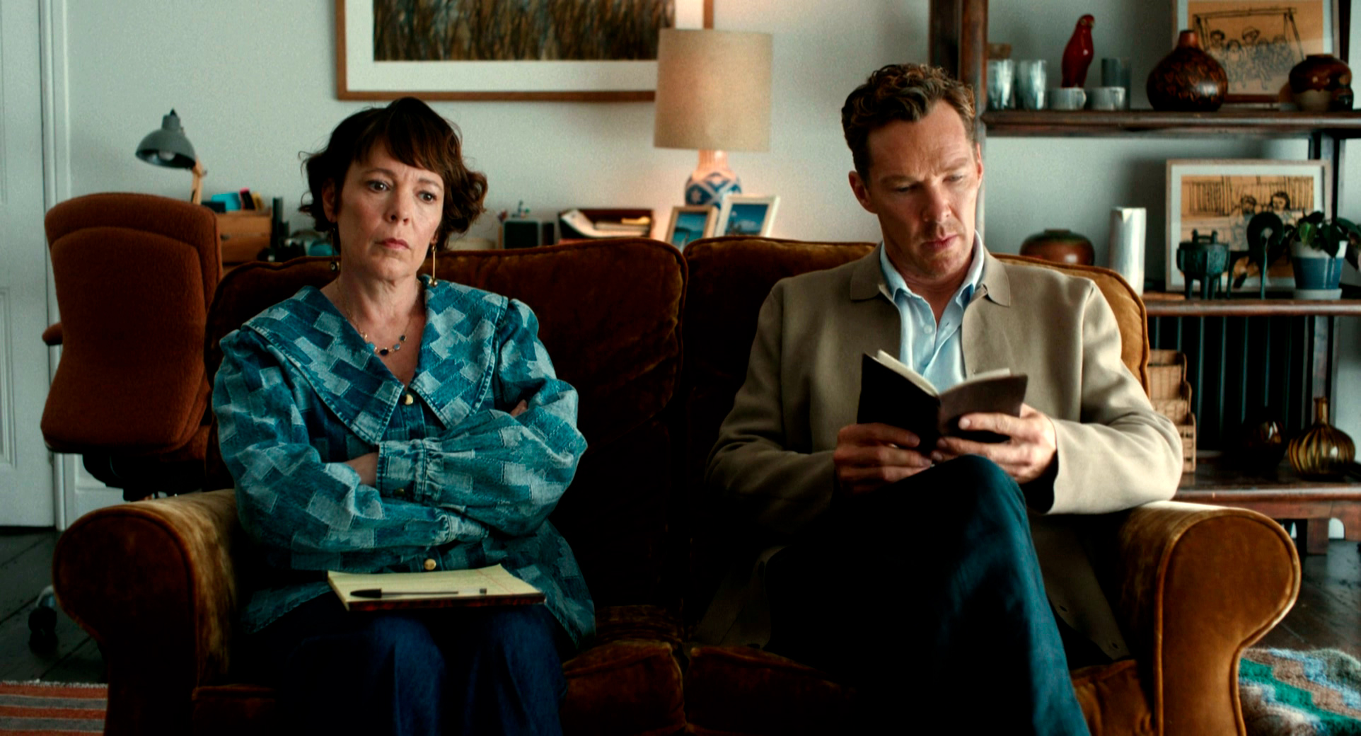 Многим, как и мне наверно, резало глаз зрительное на экране различие в возрасте Бенедикта Камбербэтча и Оливии Колман, поэтому первым делом, еще в начале фильма, я полез выяснить возраст актеров ( благо на Дюне не надо даже лезть в смартфон для этого )