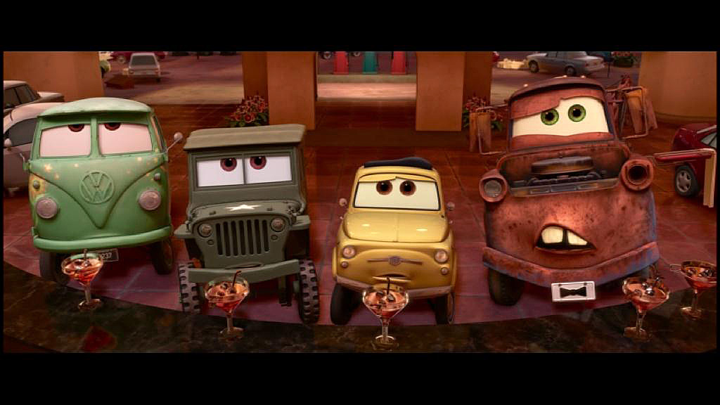Послушал также нашу озвучку. Как обычно для мультфильмов Pixar, перевод и дубляж сделаны очень пристойно. (Я вообще считаю, что Харатьян Маккуина озвучивает лучше, чем Оуэн Уилсон.) Мэтра, который тут является ключевым персонажем, замечательно озвучивает Сергей Кузнецов. Также постарались передать итальянские акценты Бернулли и мафиози. Леонид Каневский, озвучивающий Финна МакМисла, неплох, но до Майкла Кейна ему, конечно, далеко - ну нет в нем ничего британского суперагентского.