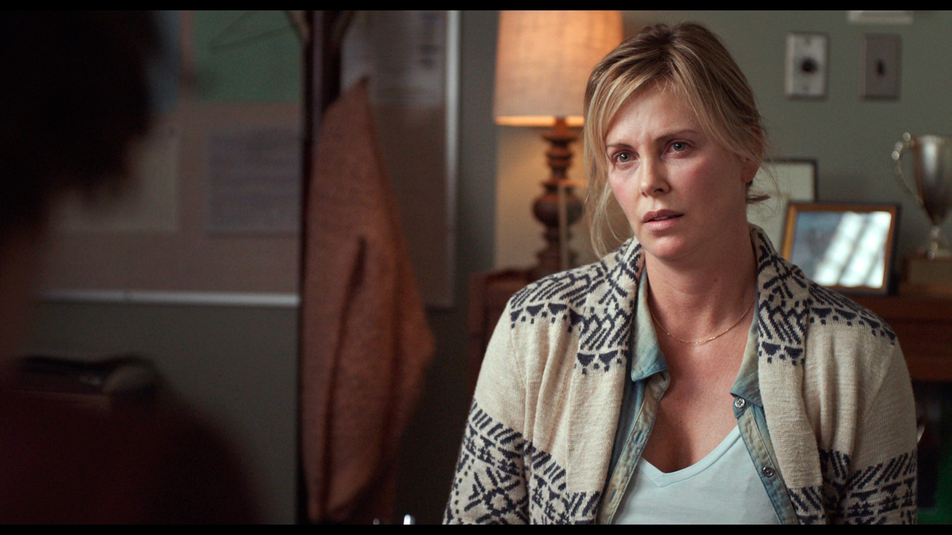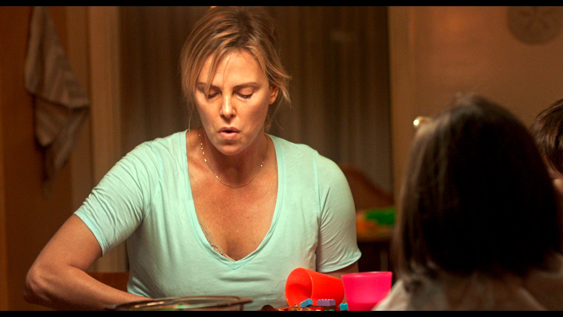 И у Шарлиз Терон получилось в полной мере передать, что происходит с женщиной, вынужденной родить третьего ребенка в ситуации, когда у нее уже есть двое детей и со вторым ребенком существует куча проблем.