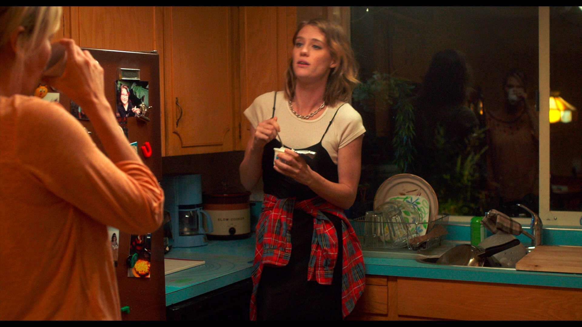 Как я уже говорил, с появлением Талли вовсе не начинается комедия из серии "чумовая ночная няня творит черт-те чо". Наоборот, там все разыгрывается очень тонко, на глубоких психологических полутонах. У Талли, молодой девушки, все еще впереди, и она изо всех сил пытается поддержать Марло, а Марло, разбираясь со своими проблемами, все чаще думает, что у Талли в будущем может возникнуть похожая ситуация. Что это только в юности картинка "счастливая семья с двумя-тремя детьми" выглядит идиллично, а суровая реальность, особенно не подкрепленная хорошими заработками, помогающими снимать часть проблем, - она может быть очень и очень другой.