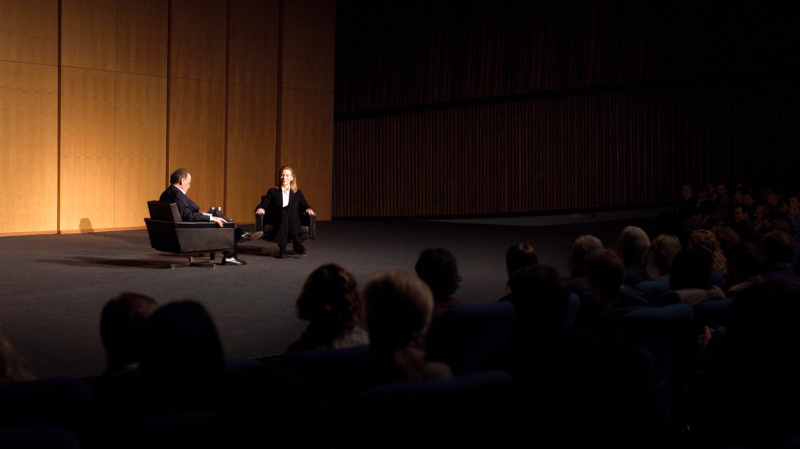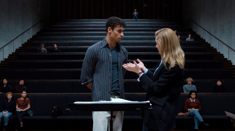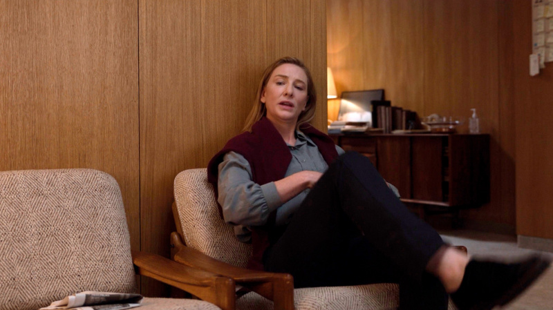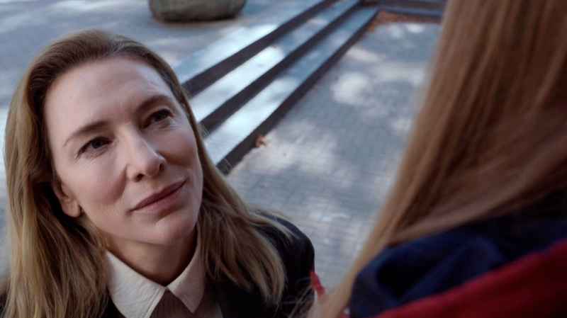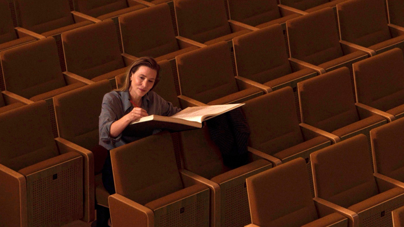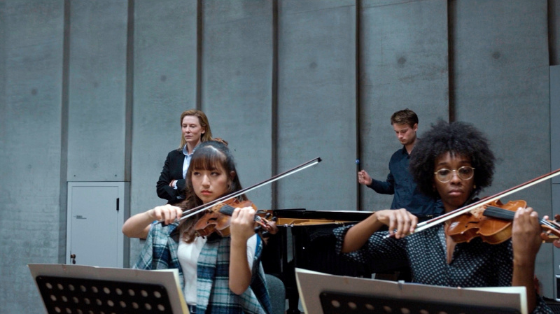 Как режиссер относится к своей главной героине? Скажем так, он ее изучает. Как и с кем она говорит, как она действует в тех или иных обстоятельствах. Она может высказывать очень интересные мысли, связанные с музыкой и ее интерпретацией, как в сценах репетиций, она может давить на людей, как в очень яркой сцене обучения студентов в Джульярде, где Лидия как раз и рассуждает о культуре отмены, она нередко обманывает людей, она временами демонстрирует свои очень неприятные черты характера, как, например, в сцене в школе, где она угрожает маленькой девочке, которая что-то там не поделила с приемной дочерью Лидии и Шэрон.