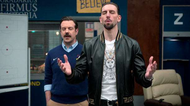 Да и сам Тед как таковой здесь не то что бы отодвинут на задний план, но он выступает скорее как некое цементирующее звено сериала, и в третьем сезоне создатели больше концентрируются на самой команде и всяких проблемах членов команды, на Ребекке и ее священной борьбе с бывшим мужем, на Кили с ее бизнесом и ее личными отношениями, на Рое Кенте, а также на Нэйте, который, судя по всему, не сильно счастлив в "Уэст Хэм", но зато он теперь встречается с девушкой Джейд (Эдита Будник) - неприступной хостессой любимого ресторана семьи Нэйта.