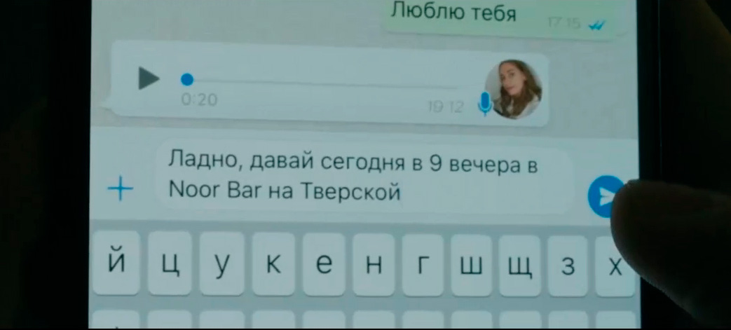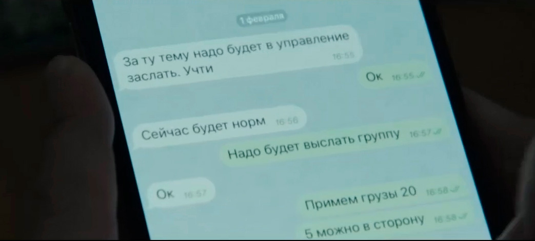 Ну и дальше три четверти фильма будет рассказываться история о том, как Илья изучает жизнь Петра по его смартфону и как он в переписке с близкими, друзьями и знакомыми Хазина выдает себя за него, причем у него там будет одна очень четкая цель.