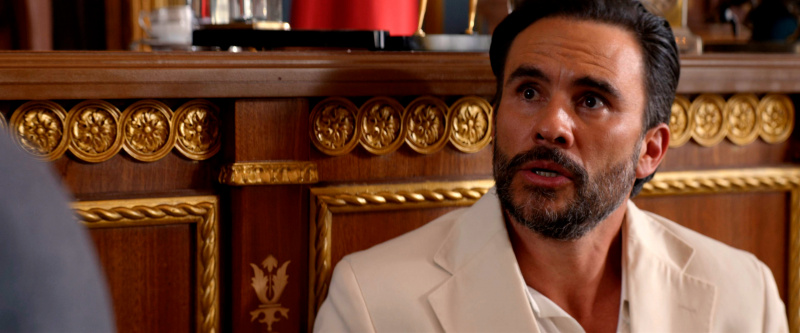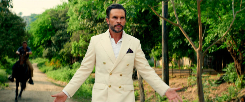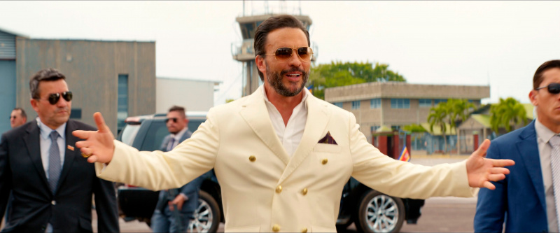 Кто там ещё? Хуан Пабло Раба самоотверженно придуривался в роли этого президента Венегаса. Роль чисто сценарно - предельно идиотская, но тут тоже надо отдать должное актёру - он действительно старался отыграть всё по полной, чем и заслужил наше уважение. Равно как и Мартон Чокаш, который этого командира наёмников сыграл так, что его вместе с наёмниками сразу захотелось нанять, чтобы они разобрались с обнаглевшими соседями по кондоминиуму.