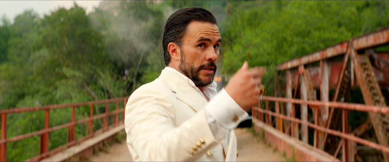 Что у них получилось? Ну, уши замечательного "Романа с камнем" тут торчат со всех сторон: эффектная писательница (здесь - журналистка), мачо-контрабандист (здесь - юрист-спецназовец), зловещий полковник Золо (здесь - опереточный латиноамериканский диктатор) - в общем, все по проверенным лекалам, которые явно недостаточно хорошо проверили.