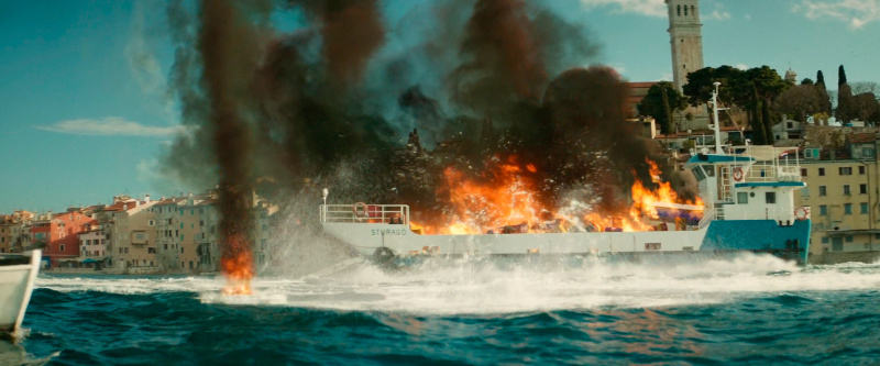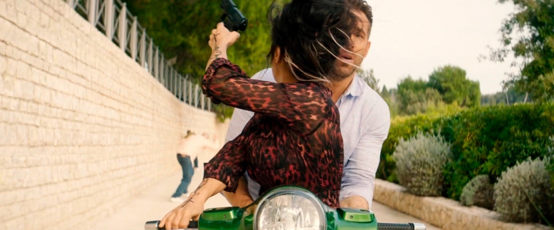 С боевичковой (мы помним, что это чистая пародия) точки зрения - скажем так, в рамках бюджета картины, в главных ролях которой заняты два вполне звездных актера с высокими гонорарами (да и Сальма Хайек тоже, знаете ли, хотя и не суперзвезда, но актриса вполне статусная) - все очень прилично: есть несколько эффектных гонок и перестрелок, есть шикарные итальянские локации (Портофино - это просто рай на Земле, да и потрясная Флоренция здесь тоже засветилась), и если накал спецэффектов до недавнего "Форсажа 256" здесь не дотягивает (что и хорошо, потому что спецэффекты не такие мультяшные, как там), то оно и понятно, ведь у девятого "Форсажа" бюджет - $200 миллионов, то есть в три раза больше.