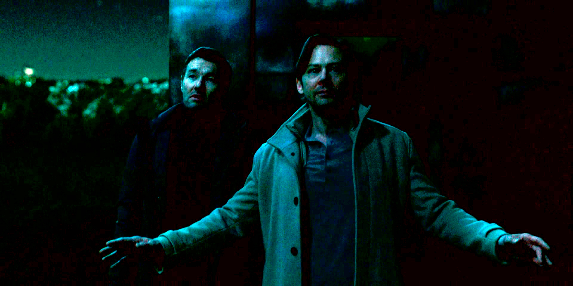 Судя по скриншотам, это один из тех фильмов, где всё происходит в потёмках и ни черта не видать, а все герои - помятые, небритые и замученные. На таком фоне уже не интересно разбираться, какие у них там параллельные миры и в чем разница. Не буду даже пытаться, ну его.