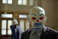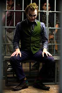 Однако Бэтмен не угадал. Есть в этом городе некто, кого следует бояться значительно больше, чем всей мафиозной шоблы. Это Джокер (Хит Леджер) - психопат-убийца с ироничным складом ума и разрезанным ртом, придающим лицу Джокера совершенно жуткое выражение.