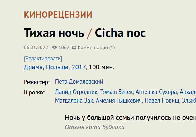 Да, я "Тихую ночь" на польском и смотрел (на Cinezen картина с русскими субтитрами), очень любопытно 😄