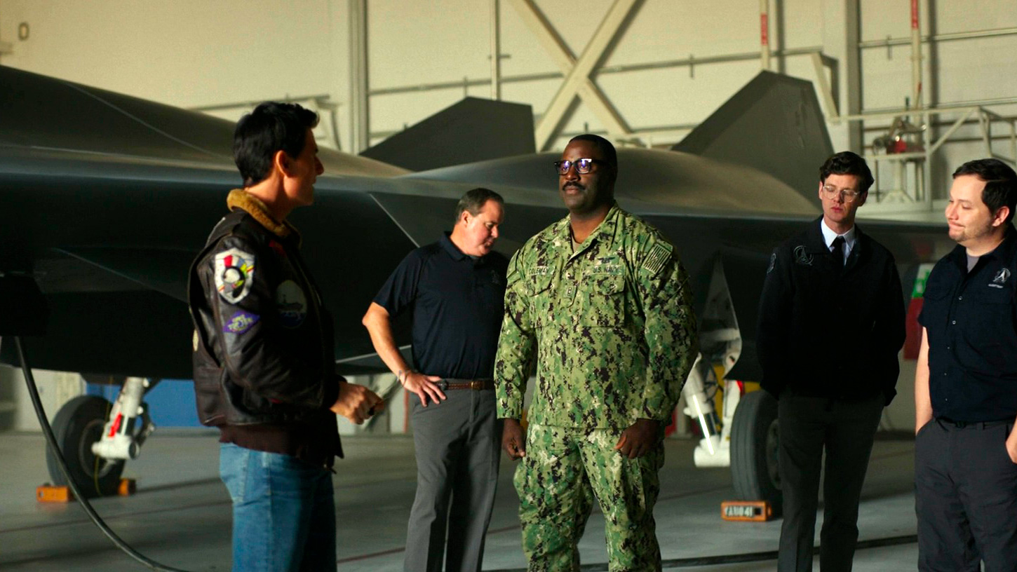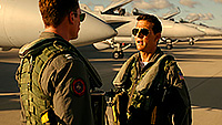Я в упор не понимал, почему это сделано настолько примитивно, плакатно, пафосно и попросту тупо. Штамповка на штамповке сидит и штамповкой погоняет. И мне казалось, что создателям фильма совершенно "до фонаря", что именно там происходит в перерывах между тренировочными или боевыми вылетами. Все эти посиделки пилотов с типа как веселыми пиханиями пузами, довольно унылая романтическая линия с Мэвериком и Пенни Бенджамин (впрочем, один забавный, хотя и предельно предсказуемый момент, там был), препирательства с начальством и тому подобная ерунда.