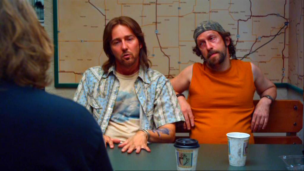 Конечно, Нортон - безусловное украшение и главная звезда картины. Сыграть в одном фильме двух таких различных персонажей - это мало кто может, но ему подобные вещи - под силу. Прилизанный преподаватель Билл в скромной одежде и с безукоризненным литературным английским и его брат Брейди - вроде бы раздолбай, однако обладающий жестким стержнем в характере и способный даже на убийство, когда по-другому нельзя. Брейди при этом разговаривает в забавной оклахомской манере, и я не очень понимаю, как Нортон ухитрялся совершенно по-своему и настолько по-разному говорить за каждого из этих персонажей.