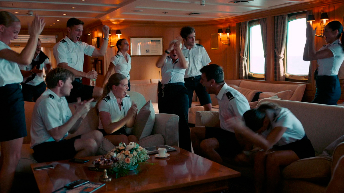 Стюард яхты (Ханна Ольденбург) дрессирует персонал и требует выполнять все прихоти клиентов. Захотелось жене Димитрия Вере (Сунньи Меллес), чтобы весь экипаж в этот солнечный день покатался с надувной горки в море - значит, надо выполнять, даже если чревато проблемами с приготовлением ужина и с сантехникой.