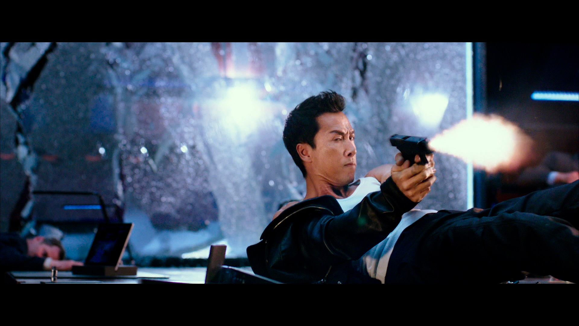А спутник сверзили с помощью нового ужасного оружия - небольшой коробочки "Ящик Пандоры". Эту коробочку спецагент ЦРУ Джейн Марк (Тони Коллетт) демонстрировала советникам ЦРУ, но в этот момент в сверхохраняемое помещение ворвался некто Сян (Донни Йен), который голыми руками навалял люлей всем этим советникам, забрал "Ящик Пандоры" и скрылся фиг знает куда с помощью сообщников.
