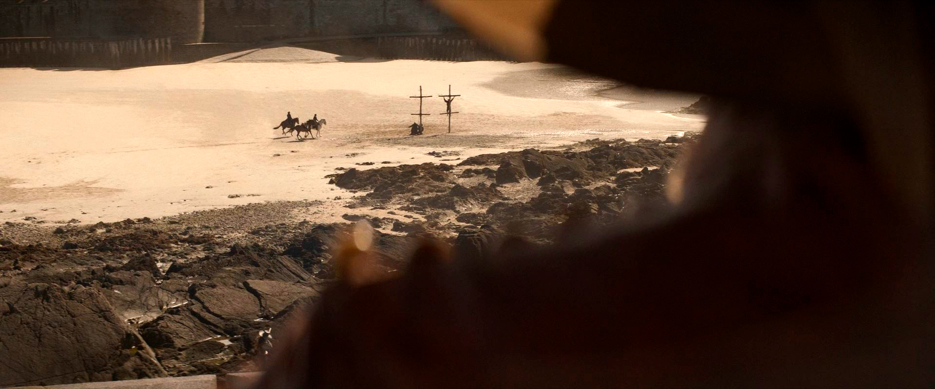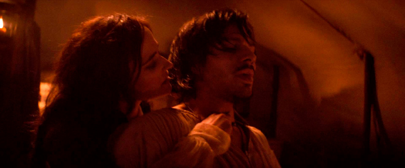 А вот с чем в картине хорошо - так это со зрелищностью. Денег вбухано действительно много, и оно хорошо заметно. В первом фильме нас радовали реальной исторической натурой (в обоих фильмах по-максимуму снимали именно на натуре, с помощью компьютерной обработки убирая приметы нынешнего времени), а здесь еще добавились всякие масштабные батальные сцены, которые выглядят заметно более эффектно, чем сцены сражений в первом фильме, где оператор увлекался залезанием с камерой в самую гущу сражающихся, и там толком ничего нельзя было разобрать.