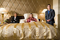 В фильме есть несколько забавных находок. Во-первых, сцена соблазнения персонажем Дэймона помощницы Банка. Дэймону при этом налепили тот самый нос, который Гильяму продюсеры не позволили налепить Мэтту в "Братьях Гримм". Во-вторых, смешные сцены с китайцем. В-третьих, измывательства над гостиничным критиком. Ну и в-четвертых, совершенно крышесносящие сцены с ток-шоу Опры Уинфри. Как Оушен рыдал во время шоу Опры - это что-то потрясающее!