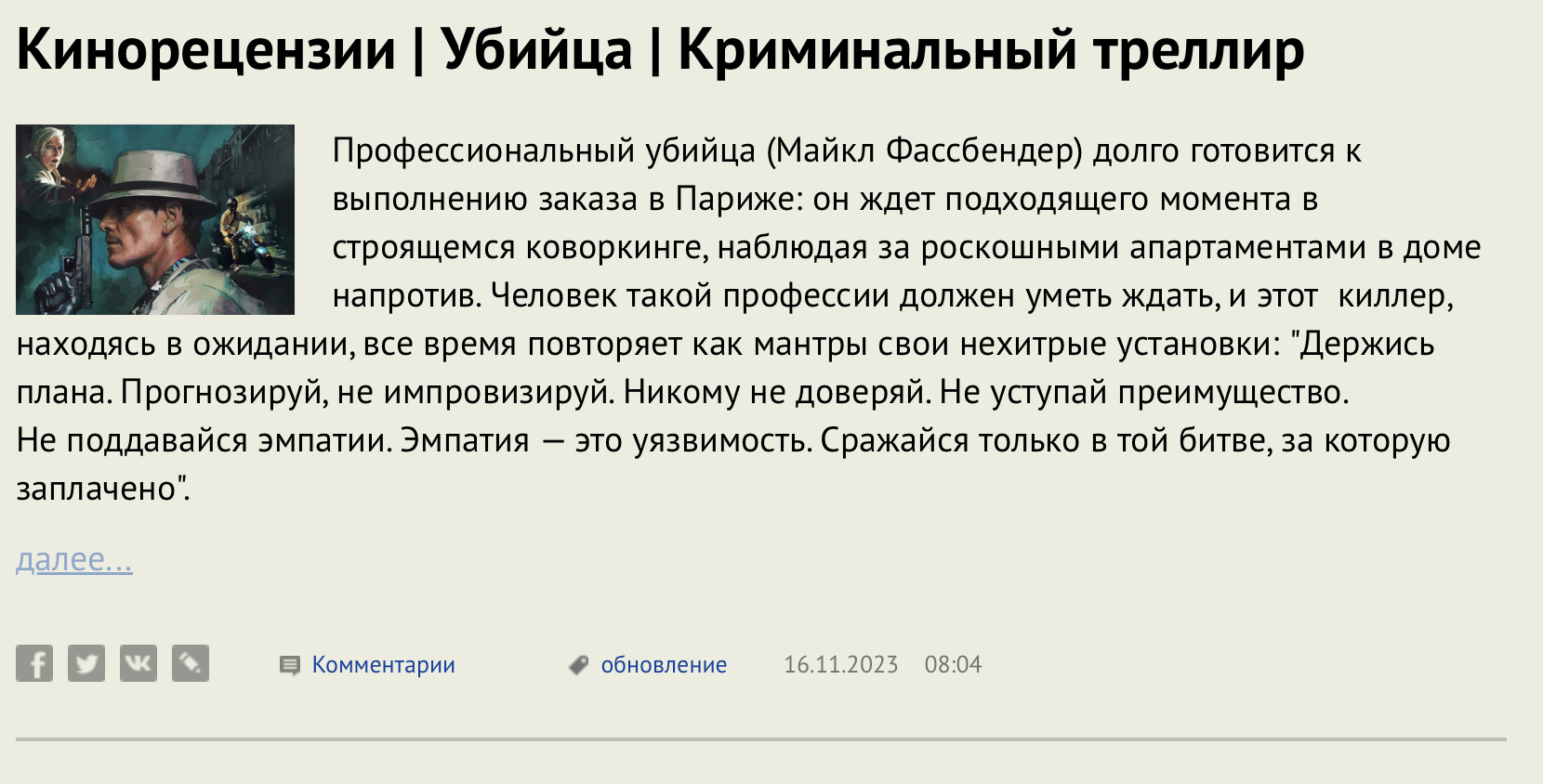 а постоянное повторение слова "киллер" в описании сюжета наводит на мысль, что и редактор тоже сломался... (