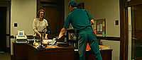 Впрочем, нужно сказать, что с точки зрения постановки как таковой и актерской игры - если постараться полностью игнорировать практически идиотский сюжет - тут все как раз хорошо. Финчер все-таки мастер: его фирменные мрачные зеленые тона, до мелочей выстроенный кадр, внезапно офигенно поставленная схватка киллера с одним из нападавших на его дом, где в ход идет большое количество подручных кухонных предметов, среди которых важную роль сыграет то ли чеснокодавка, то ли терка для сыра - вот это сделано действительно здорово.