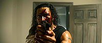 Киллер подъезжает на машине к шлагбауму , выходит, вынимает пистолет и передергивает затвор, чтобы через несколько кадров , уже подходя к дому, передернуть его снова.