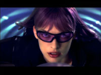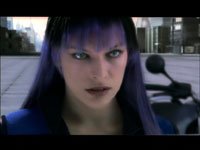 Но есть еще люди, которые способны противостоять зловещим планам подлого кардинала! Это крутая тетка Ультрафиолетка (Милла Йовович)! Когда-то она была просто Фиолетка. Но ее заразили гемофагией, после чего тетка резко окрутела, изучила приемы ган-каты (это когда пистолет, вместо того чтобы просто прострелить противнику башку, используется для брачных танцев), и друзья прозвали ее Ультрафиолетка - за кошмарного цвета паричок, которым тетка пользуется всегда, когда хочет поразить врагов в самую печень.