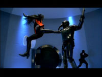 Ультрафиолетка пробралась в секретное логово врага и похитила Смертельное Оружие, представляющее собой маленький плоский чемоданчик. Вы спросите, как ей удалось пробраться в святая святых? Они там что, совсем дураки? Не могут отличить гемофага от простого законопослушного гражданина? Нет, не дураки. Но Ультрафиолетка скушала таблеточку, изготовленную ее приятелем, химиком-надомником Гартом (Уильям Фичтнер), и гемофагизм у нее временно пропал - кровь стала чистая и светлая, в результате чего враги были обмануты.