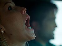 Вполне пристойная актриса Дженнифер Лоуренс (в недавнем фильме "Без обид" она была хороша) с полным самоотречением отдается своей работе в этом фильме: она очень убедительно ползает на четвереньках, размахивает ножом, время от времени расшибает лоб то о торпедо машины, то о какое-нибудь зеркало или стекло, кричит, воет, лает, обнажается и наблюдает за природой.