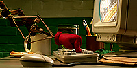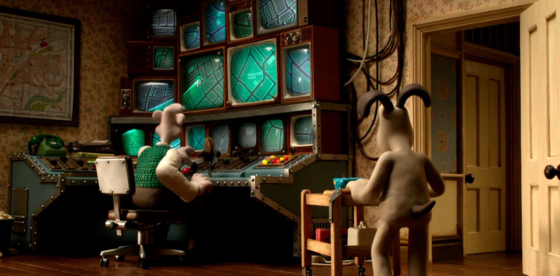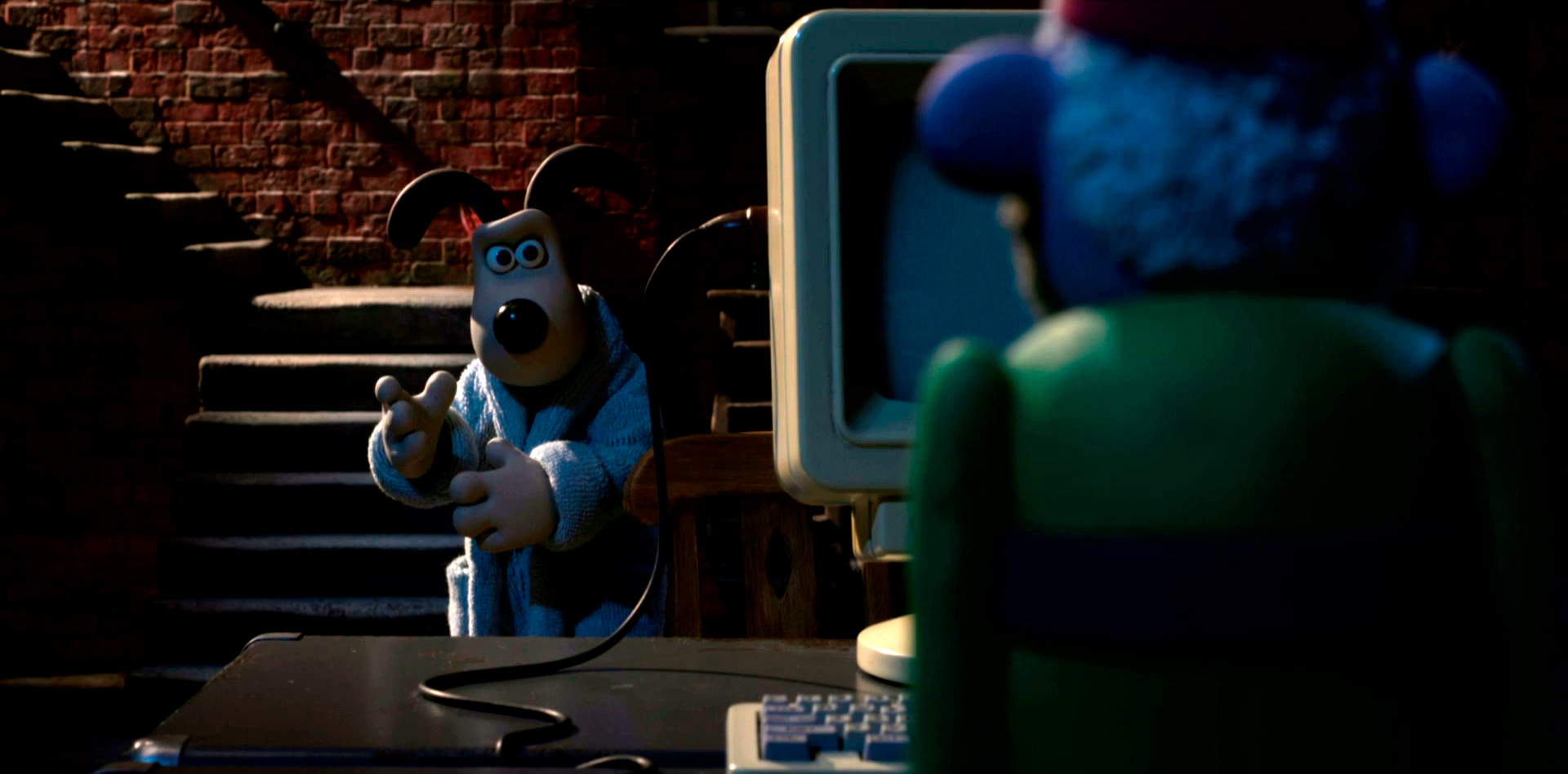 Кстати, по поводу "признаков старого фильма"... Ник Парк не хотел менять антураж старой короткометражки. Поэтому тут компьютеры с монохромными CRT-мониторами, телефоны с дисковыми номеронабирателями, катушечные магнитофоны, а интерфейс компьютера Уоллеса похож на Windows 95. И это тоже - приятная ностальгия: ну как не вспомнить времена, когда мониторы были большими, оперативки в 640 Кб хватало для любых задач, а чтобы загрузить фото одной фривольно одетой женщины через модем - требовалась целая ночь. Да, это были времена, которые мы потеряли. Аминь. Ой, в смысле - алилуйя!