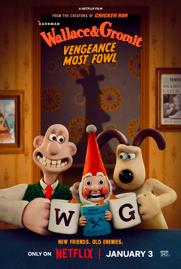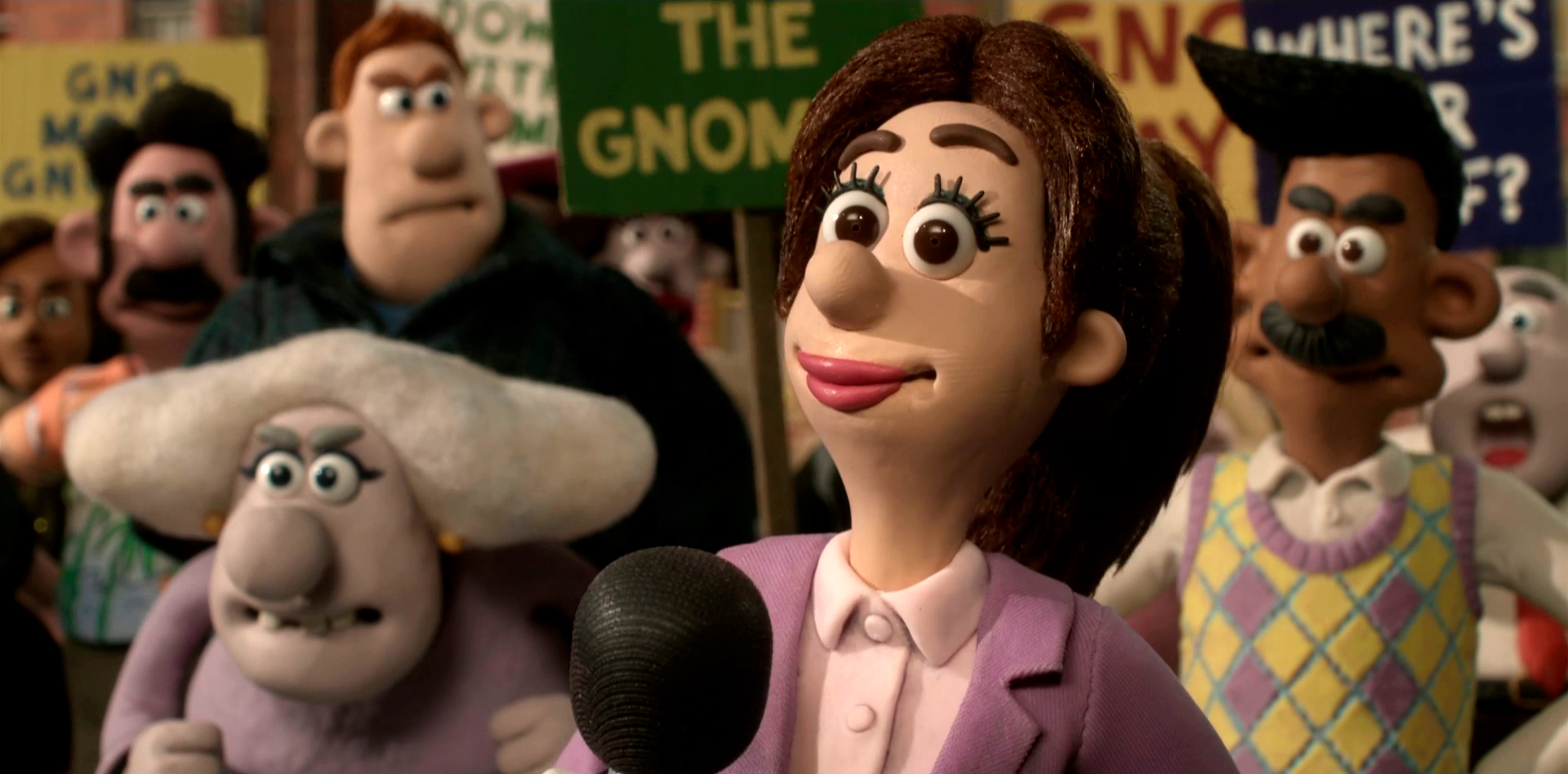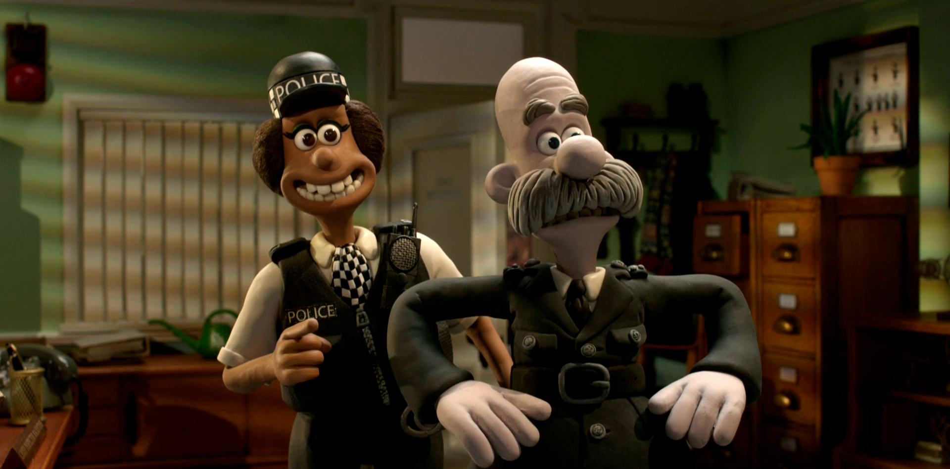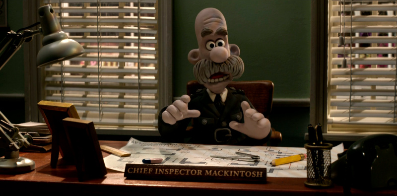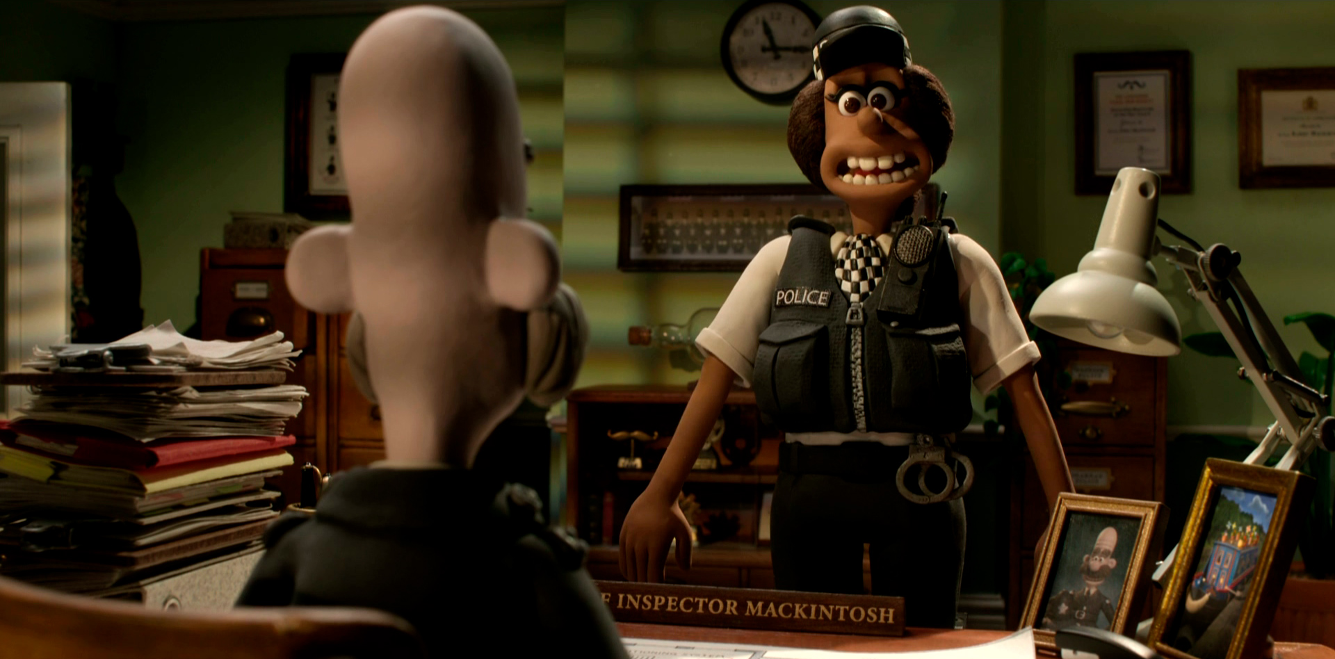 Также здесь есть два условно новых классных персонажа - главный инспектор Маккинтош, которого озвучил очень известный комик, стендапер и музыкант Питер Кэй, а также новенькая - полицейский констебль (или как сейчас надо писать - констебелька?) Мукеджи, которую классно озвучила Лорен Пател. Условно новых - потому что инспектор Маккинтош уже появлялся в "Проклятии кролика-оборотня", и Ник Парк боялся, что он не сможет использовать этого персонажа в новом фильме - из-за проблем с авторскими правами, принадлежащими DreamWorks Animation.