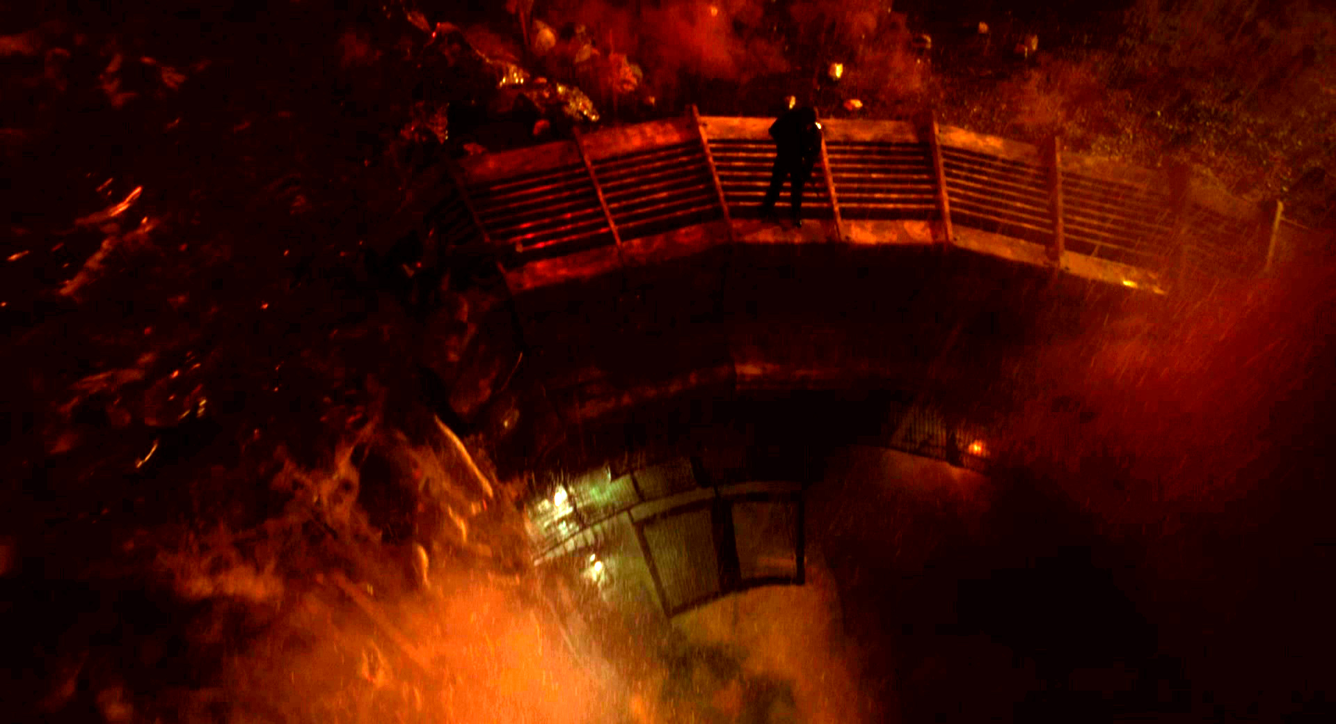 * Сцена спасения уж очень фантастична. Настоящий Deus ex machina. В древнегреческой трагедии бог спускался на сцену, сидя на скамеечке на верёвочках, чтобы спасти героев. И тут так же, только поднимаются.