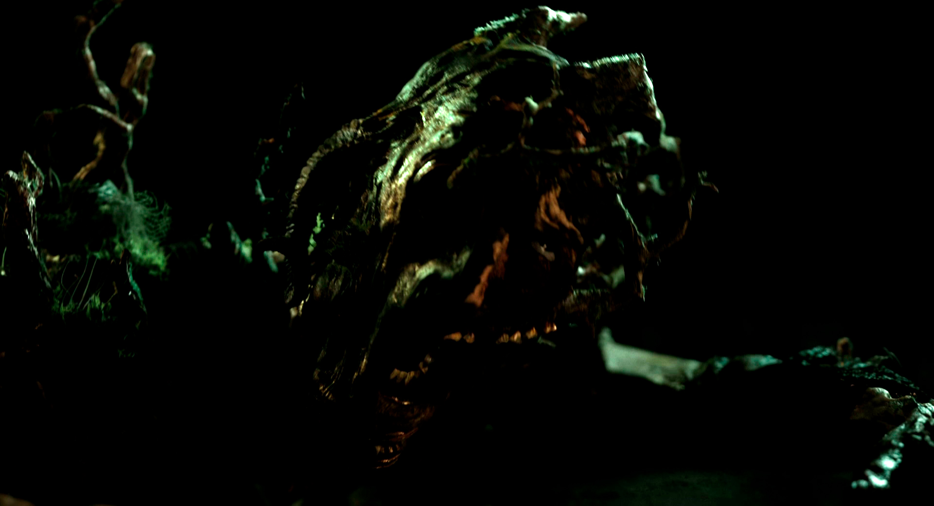 Как романтическая история это все смотрелось классно, и я очень надеялся, постановщик на этом и сосредоточится: там можно было хорошо сыграть на природе страха перед неведомым, поговорить о границах доверия и о том, как представители вроде как непримиримых соперников сближаются друг с другом, однако там довольно быстро из ущелья полезли эти "полые люди", как будто вылезшие из совсем другого фильма, дешевого ужастика, и стало понятно, что постановщик тут пытается скрестить коня и трепетную лань, причем если с конем - романтической линией - тут все в порядке, то с трепетной ланью, которая представляет собой различные вариации Грута, появляющиеся из локального грутового ада, - оно все как-то прям совсем не скрещивалось, тем более что на такой лани я бы совершенно точно не захотел бы прокатиться.