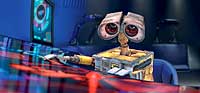 Есть просто потрясные кадры, например где одинокий Валл-и движется по бескрайним просторам мусора, - этакая апокалиптичная картина. А ожиревшее человечество в полуинвалидных креслах, прилипшее к мониторам...хм.. неплохая шпилька.)
