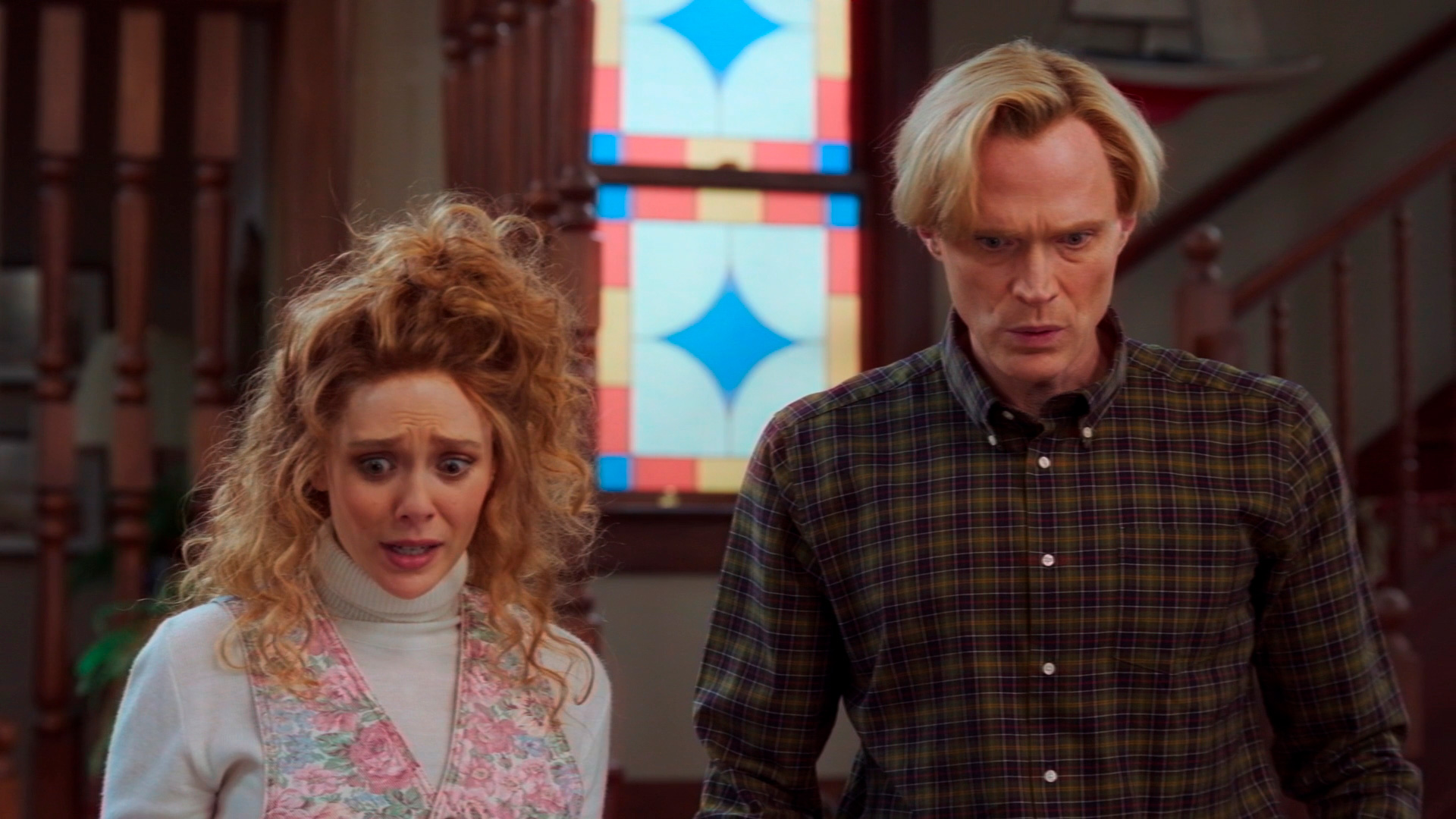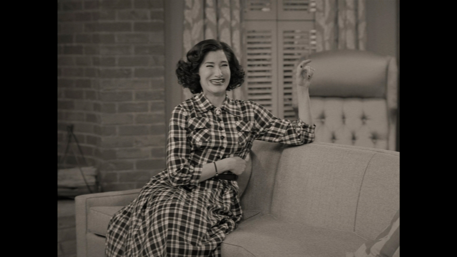 От первых трех эпизодов я в полном восторге! Совершенно восхитительные стилизации под эпоху и ситкомы шестидесятых, семидесятых и восьмидесятых: это все и снято изумительно, и сыграно просто блестяще, причем не только Элизабет Ольсен и Полом Беттани, играющих Ванду и Вижна, но и другими актерами, среди которых особенно выделяется очень активная и несколько навязчивая соседка Агнес, отлично сыгранная Кэтрин Хан.