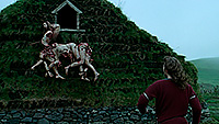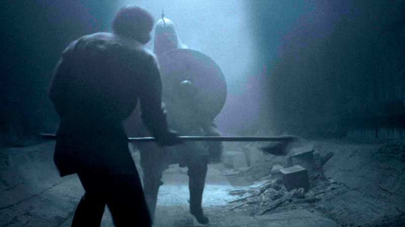 При этом сюжет Амлета, короля викингского, предельно прост и примитивен. Помимо упомянутой завязки нам показывают повзрослевшего Амлета, который под прикрытием пробрался на остров подлого дяди, коего он должен убить, ибо месть и все такое. Но сначала ему условный Мерлин вручит волшебный меч, Амлет волшебным мечом покрошит большинство приспешников Фьельнира в яичницу с сосисками, а потом черед дойдет и до дорогого дядюшки, ясный Один.