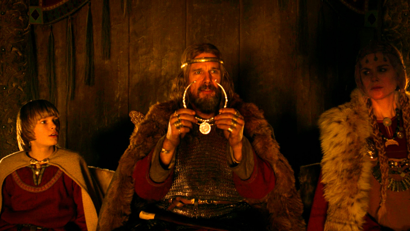 Исландия, 895-й год. Король Аурвандил (Итан Хоук) по прозвищу "Ворон Войны", муж королевы Гудрун (Николь Кидман) и отец маленького Амлета (Александр Скарсгард), принца викингского, вернулся домой после дел ратных. В походе короля подранили, поэтому он поспешил провести со своим сыном Амлетом обряд инициации, символизирующий превращение мальчика во пса войны. Обряд не слишком сложный: нужно полакать из миски, повыть на Луну, после чего шут и по совместительству шаман Хеймир (Уиллем Дефо) обкурит мальчика всякой дурью, и тот словит забавный приход.