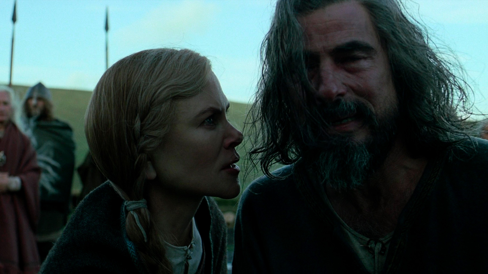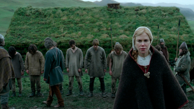 Николь Кидман - это просто какая-то трагедия. Если в сериале "Отыграть назад" ее изрядно отшлифованное пластическими операциями лицо смотрелось еще хоть как-то уместно - в конце концов, она играла очень богатую женщину за пятьдесят, которая спокойно могла прибегать к услугам пластических хирургов, - то для королевы викингов в конце восьмисотых годов оно выглядело как-то предельно неуместно.