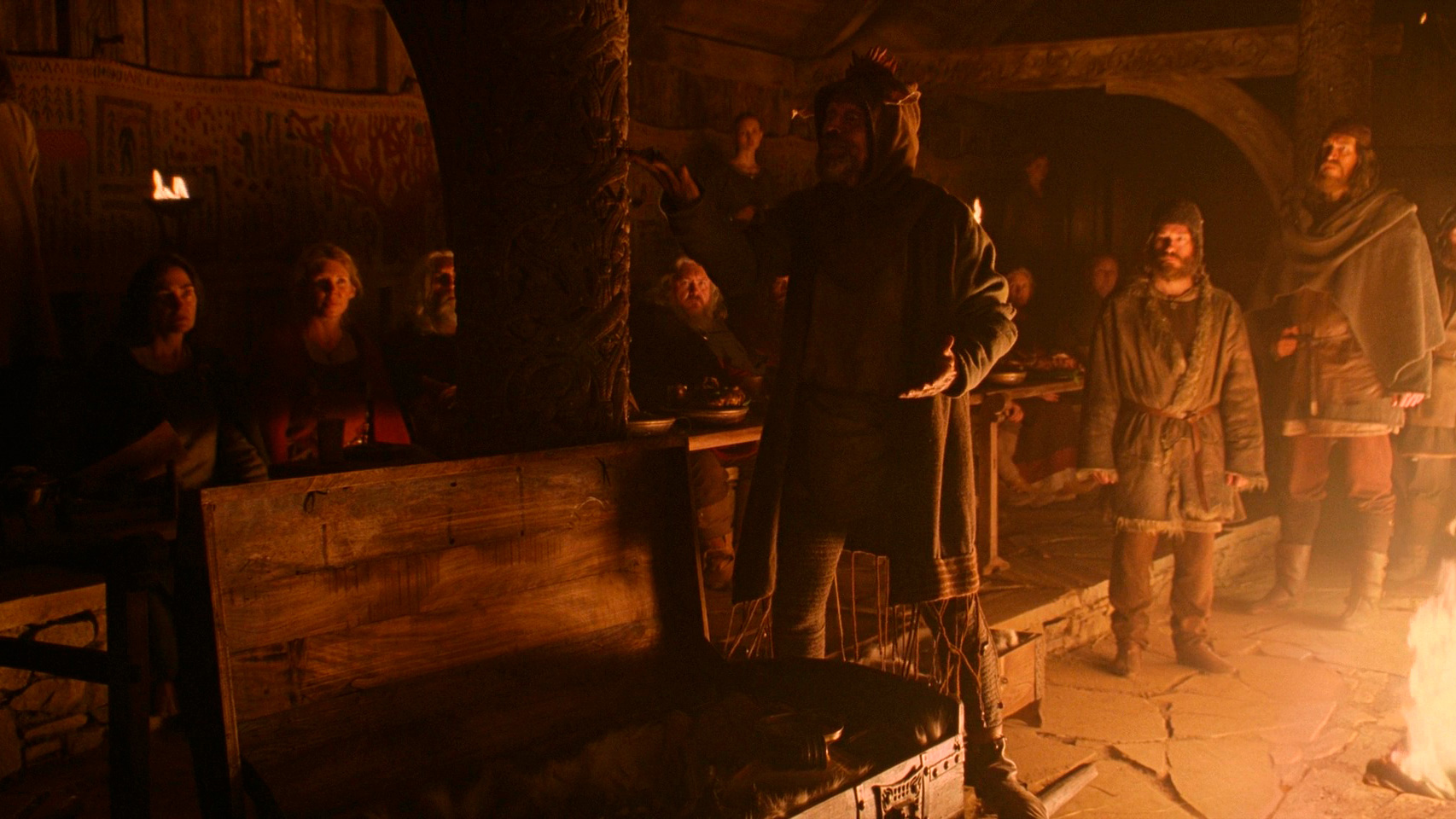 Но тут в какой-то момент колдунья рассказала Амлету, что его подлого дядю свергли с престола и тот осел где-то в Исландии, куда как раз викинги собираются отправить рабов на продажу. Пепел Аурвандила стучит в сердце принца викингского, так что он обрезает себе волосы, одевается в рабскую одежду и под таким прикрытием отправляется в Исландию на встречу с негодяйским родственником.