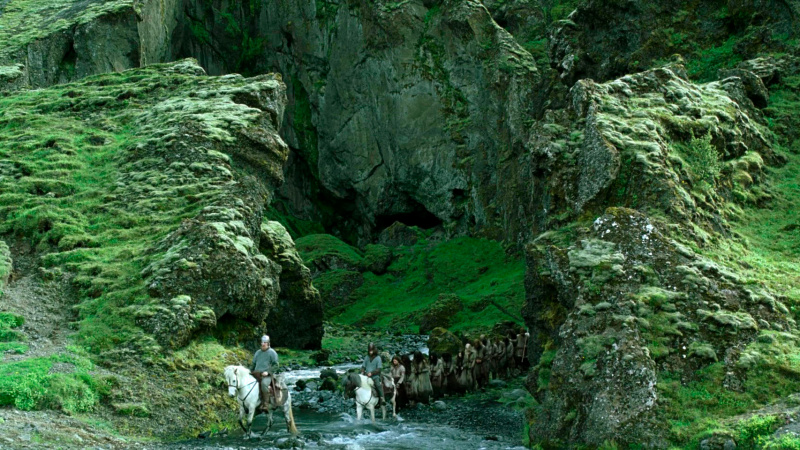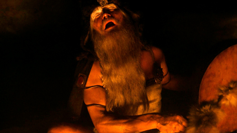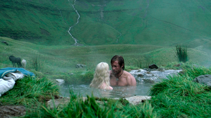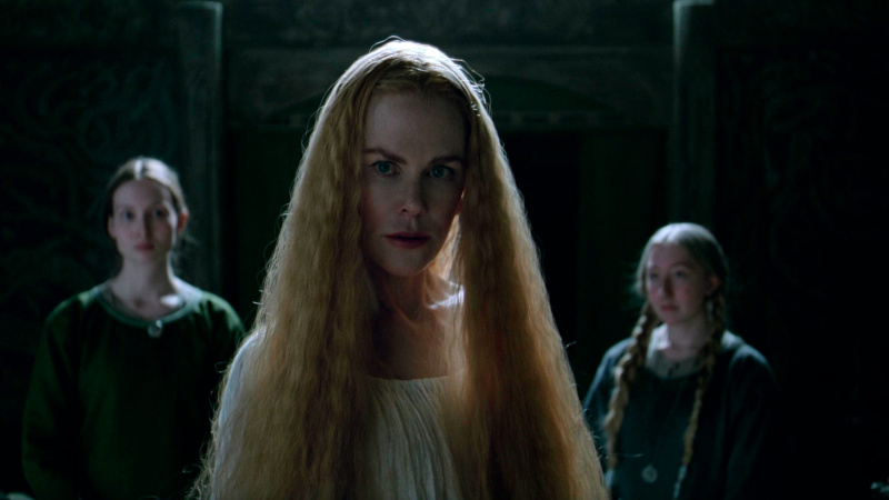 Что получилось у Эггерса? На мой взгляд, у него получилось нечто вроде "Конана-варвара", только значительно дороже, заметно брутальнее, кровавее и натуралистичнее, с колоритнейшими пейзажами северной Ирландии, которая здесь изображала Исландию. При этом картина набита всякой мистикой и достаточно дикими ритуалами, которые специально показывали в любимом стиле этого режиссера: сплошная темень, всполохи огня, среди которых появляются всякие человеческие тела - или почти обнаженные, или одетые во всякие причудливые шаманско-колдовские одежды.