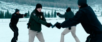 Фильм неплохой, а вот финальное мочилово как раз не особо. Даже приняв фантастическое предположение, что охрана буровой зимой в мороз ходит постоянно в бронежилетах, они от любой пули из полицейского кольта или там беретты отлетали бы на пару метров, а не стояли, как вкопаные...