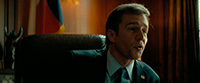 Потом в какой-то момент, к моему большому удивлению, "Власть" вдруг как-то перестраивается, и дальше все идет в очень узнаваемом и очень мною нелюбимом майкл-муровском стиле "Фаренгейт 9/11", который кратко можно обозначить как "Хинштейн мочит Рушайло". Общеизвестные факты, преподносящиеся как откровения, откровенные выдумки (МакКей наверняка называет это "реконструкция исторических событий"), примитивные ассоциативные визуальные ряды, причем это все неожиданно вдруг перемежается явной буффонадой в стиле SNL и ты перестаешь понимать, что вообще смотришь: попытку осмысления этой очень непростой и очень влиятельной политической фигуры или же очередные скетчи SNL, которые непонятно зачем собрали в очень длинный и очень нудный фильм, несмотря на всяческие попытки режиссера периодически сострить и скозлить.