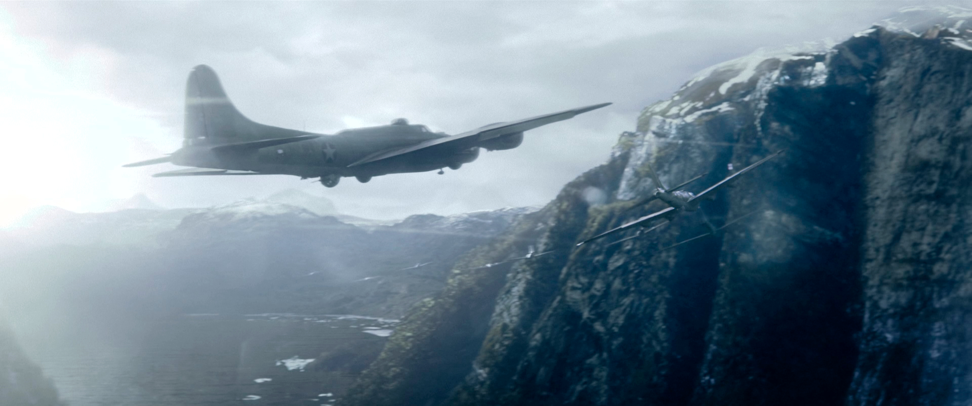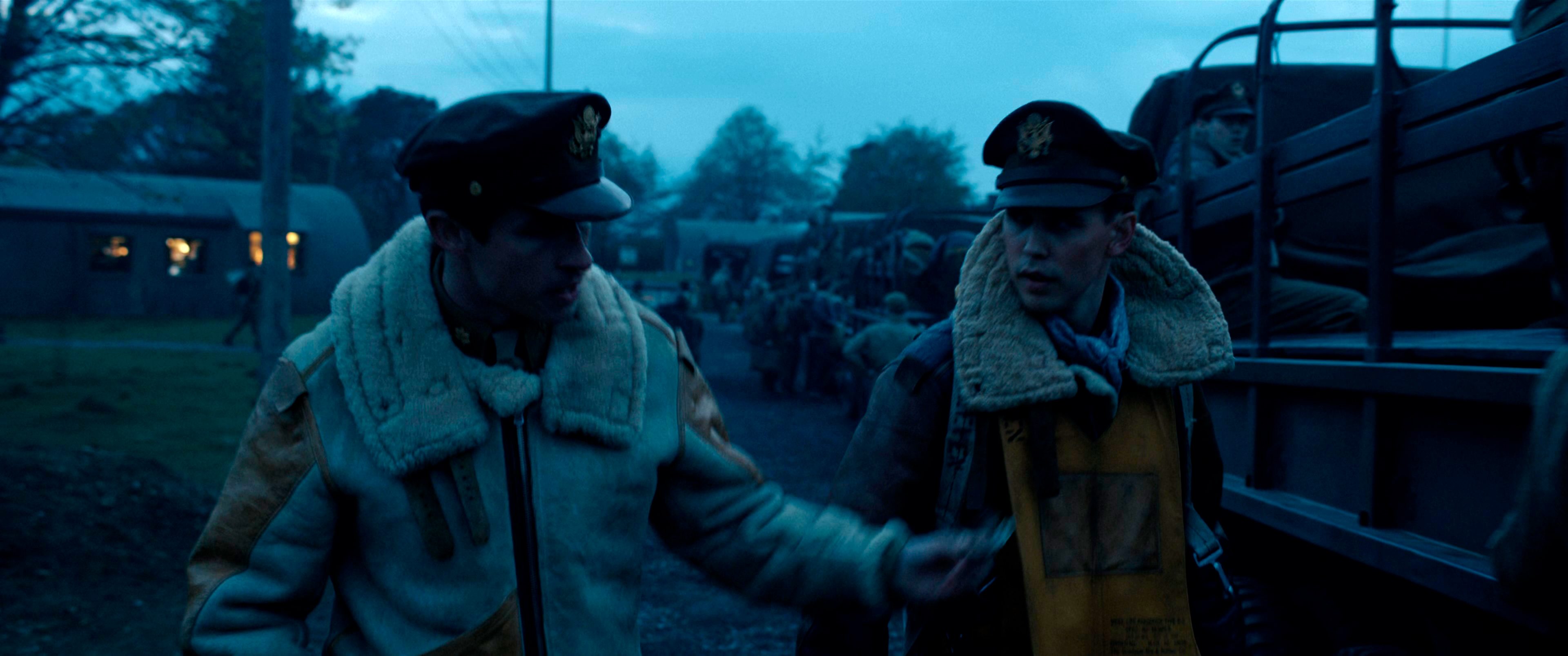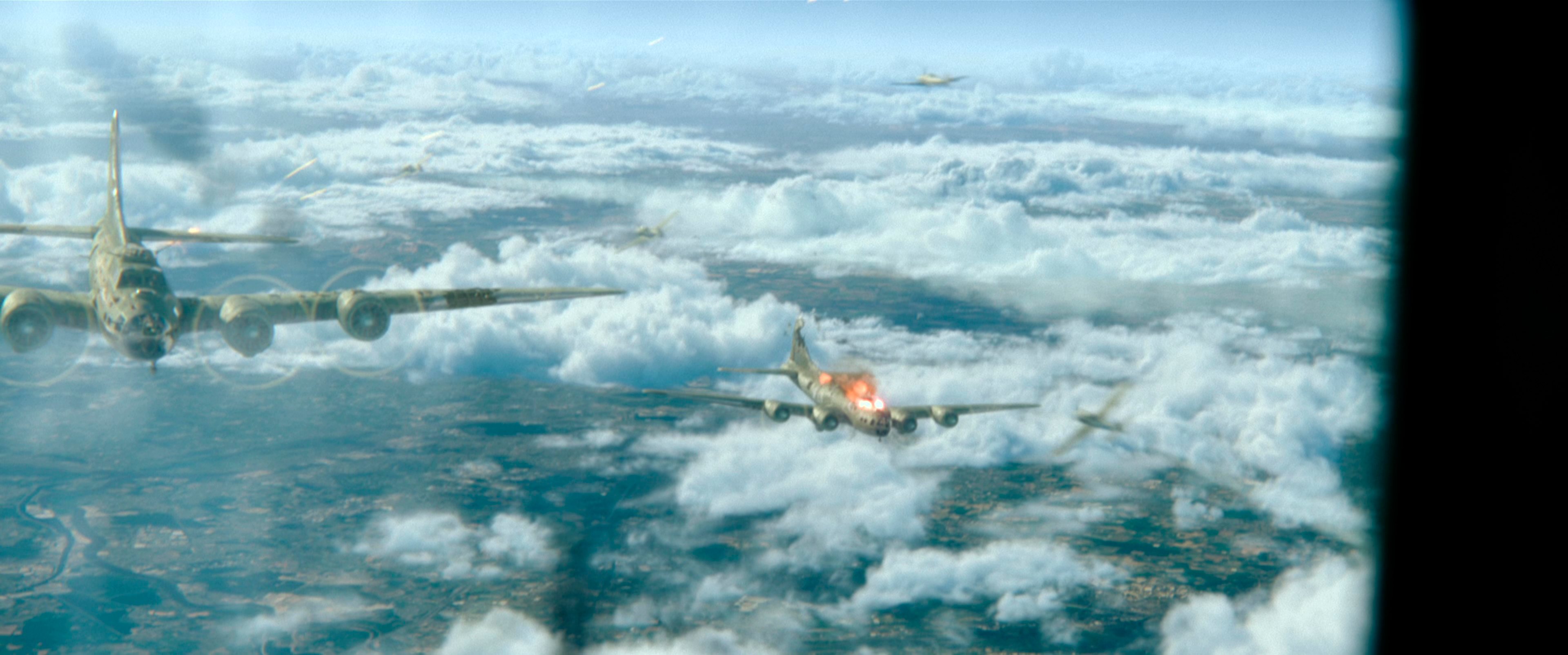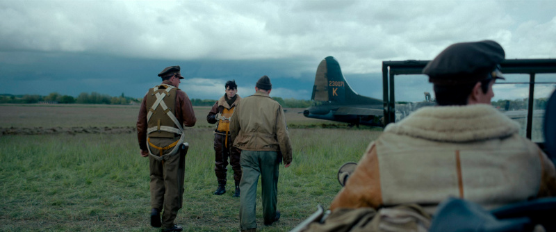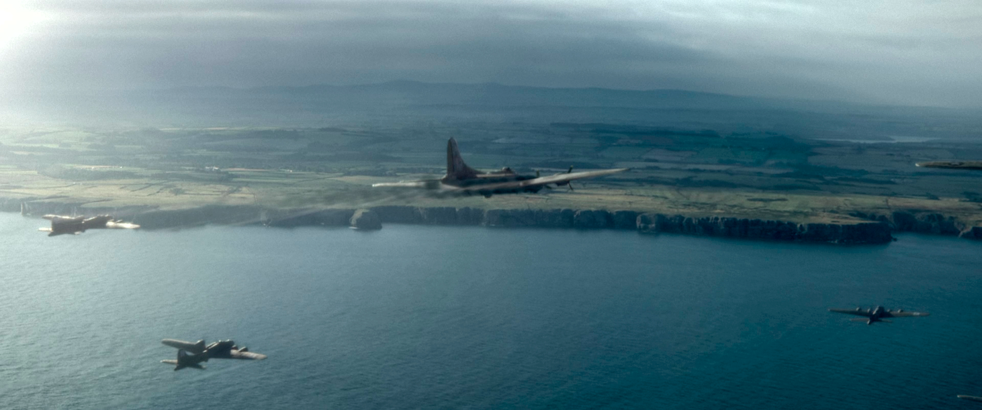 И при съемке использовалась технология The Volume, которую, например, применяли в "Мандалорце" 2019 года: копии B-17 подвешивались на высоте 15 метров внутри экранной сферы в 360 градусов, на которой проецировалось происходящее, причем подвес реагировал на происходящее - на взрывы и так далее. При этом актерам было очень сложно попадать в этот подвесной макет, так что им обычно приходилось проводить до 7 часов внутри, чтобы можно было отснять запланированные сцены боев.
