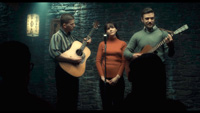 В какой-то из рецензий прочитал, что, мол, Кэри Маллиган тут играет саму Джоан Баэз и играет отвратительно. Я, конечно, совсем не знаток этой эпохи, но совершенно очевидно, что это никакая не Джоан Баэз, а парочка взята с реально существующего тогда фолк-дуэта Джима Гловера и Джин Рэй, которые выступали в те годы в Гринвич-Виллидж.