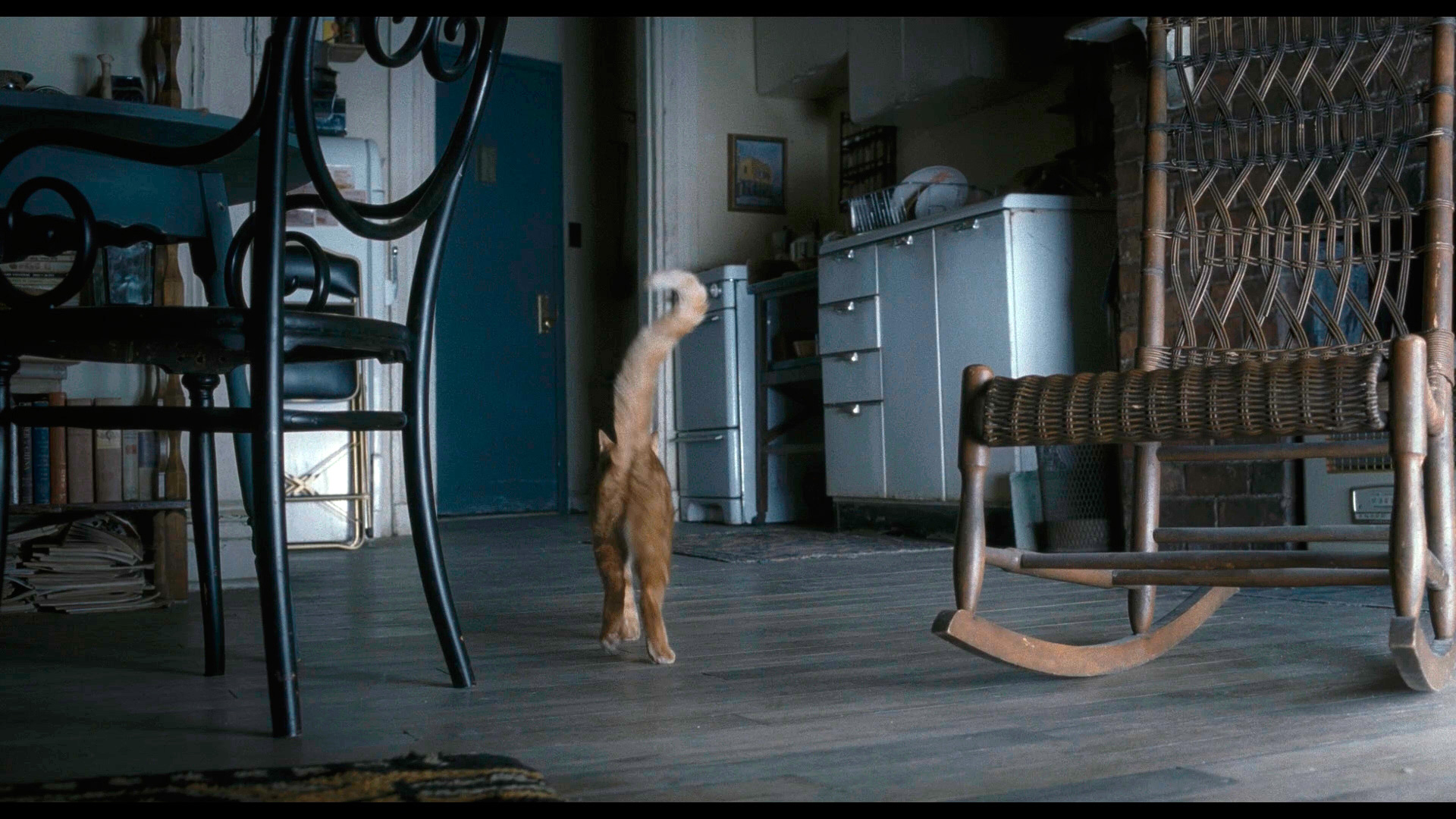 Кот. В чем смысл присутствия кота в большинстве сцен с Льюином? В фильме Дэвис, уходя из квартиры Горфейнов, случайно выпускает их кота, а так как входная дверь захлопнулась - Льюин тащит кота с собой к Джиму и Джин. Потом кот сбегает, позже находится, затем Льюин вместе с котом отправляется к Чикаго, чтобы повстречаться с Бадом Гроссманом, - в общем, кот там вдоволь напутешествовался.