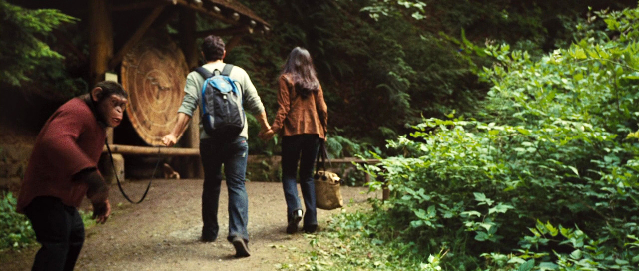 Насчёт подлых людишек, закрывших Цезаря в обезьянник - не только в этом же дело. Ему просто уже небыло смысло в дом возвращаться. Зачем? сидеть постоянно на хате, в окошко глядеть, и раз в неделю на поводке на природу выезжать? Вот он и взбунтовался. Хоть и умный, а всё-равно подросток). Ну и там ещё любовная линия, обезьяна-девочка Корнелия которая спала с игрушечной лошадкой в обнимку. Её из питомника увезли, ещё один стимул Цезарю вырваться на свободу).
