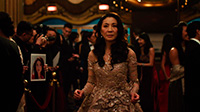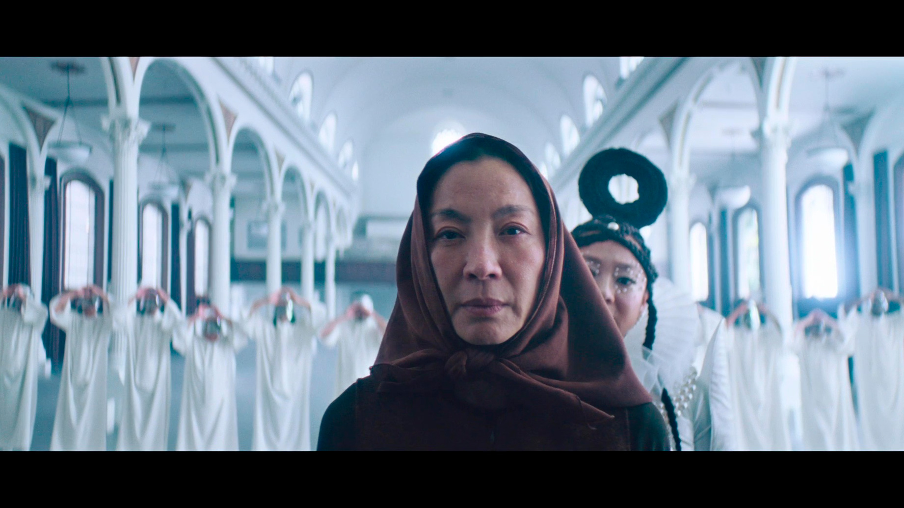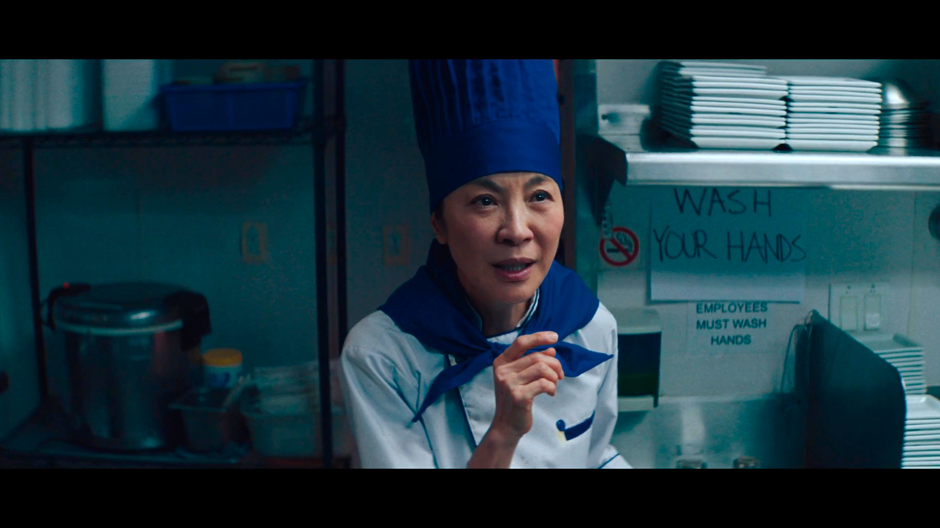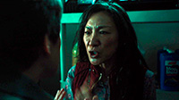 Однако вот этот переход к фантастической веселухе произошел как-то - не сказать что очень бодро. И еще полчаса это все развивалось очень неспешно, что, признаюсь, несколько раздражало. И только потом, через час от начала фильма, действие резко ускорилось, после чего картину пошло лихорадить (в хорошем смысле) в самые разные стороны - от "Матрицы" до "Крадущегося тигра, затаившегося дракона", где, напомню, прекрасная актриса Мишель Йео играла главную роль, как и в данном фильме. Одновременно ее героиня своей твердостью и непреклонностью напоминала ее же Элеанор Янг из "Безумно богатых азиатов".