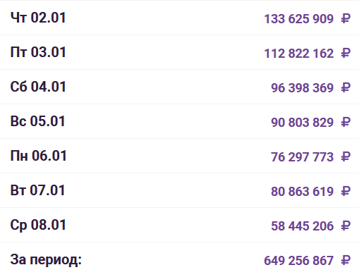 ЕАИС говорит, что фильм собрал 15,5 лямов баксов, что явно больше 649 млн рублей.