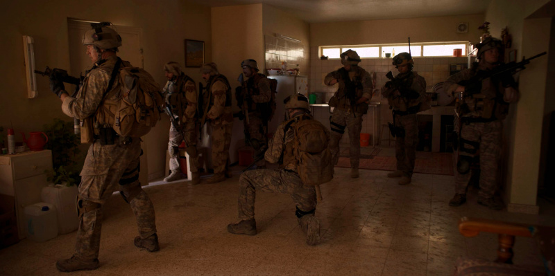 Американская военная операция в Ираке, город Рамади, 19 ноября 2006 года. Боевая группа "морских котиков" Альфа-Один выезжает на задание по обеспечению прикрытия морпехов в ходе захвата Рамади. Группа берет под контроль двухэтажный дом, состоящий из двух квартир. Жителей дома собирают в одной комнате и просят из нее не выходить. Связист Рэй Мендоса (Д’Фарао Ун-А-Тай) с помощью оператора дрона осуществляет наблюдение и находится на связи с командованием. Снайпер Эллиот Миллер (Космо Джарвис) следит за рынком, находящимся через дорогу, на котором наблюдается какая-то подозрительная активность.