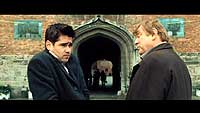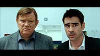 Во-вторых, диалоги в фильме действительно великолепны! (Собственно, поэтому я и привел столько цитат в эпиграфе.) Причем не только текст как таковой, хотя он тоже блестяще написан, а интонации и различные тонкие акценты. И тут, конечно, очень заметно мастерство актеров. Грустный и какой-то слегка отстраненный Кен Брендана Глисона, искренний и порывистый Рэй Колина Фаррелла с его очень забавным ирландским акцентом, жесткий и истеричный Гарри Рэйфа Файнса. Одни эпизоды играются ими фактически только на взглядах и эмоциях - текст там уже не так уж и важен. Однако другие эпизоды блестяще смотрятся именно из-за того, что и как говорят персонажи.
