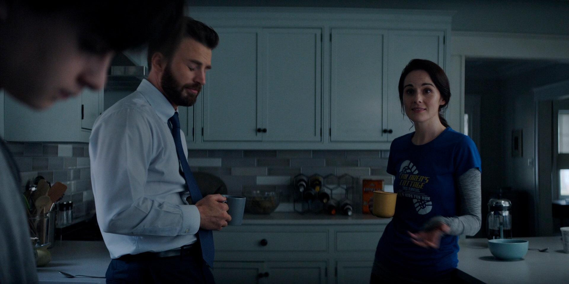 Что тут с актерскими работами? Крис Эванс в роли Энди Барбера мне не сильно понравился. Нет, конечно, это не Капитан Америка, но вот как-то не был он убедительным в своих переживаниях. А ведь это сильнейшее потрясение для отца, сына которого обвиняют в подобном преступлении. Также мне страшно мешало то, что все эти безумные дни и недели Барбер проходил с идеальной стрижкой типа как от "Тони и Гай", а его борода была безукоризненно ухожена, как будто он через день посещал барбершоп. На фоне в общем-то совсем неярких эмоций его персонажа такая внимательность к собственной внешности заметно портила впечатление. Как мне показалось, для этой роли требовался актер, умеющий показать совсем другой уровень эмоциональной вовлеченности, а у Эванса это почти не получилось, хотя материал-то был выигрышный. Вот в картине "Достать ножи" у него был заметно более яркий персонаж.