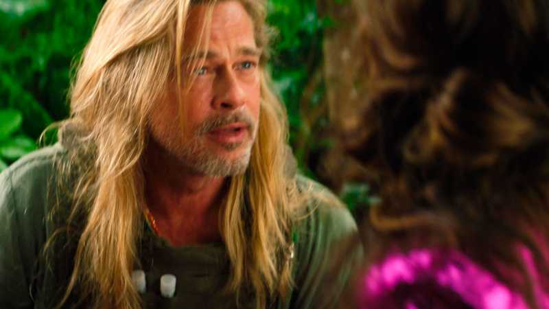 Откуда тут вообще взялся Брэд Питт - известно: они с Сандрой вместе снялись в фильме "Быстрее пули" (это в России так обозвали Bullet Train), который в июле выйдет на экраны, и она его уговорила появиться в "Затерянном городе". Причем это даже не совсем камео, а более или менее полноценная, хотя и совершенно эпизодическая роль, и Питт её сыграл отлично!
