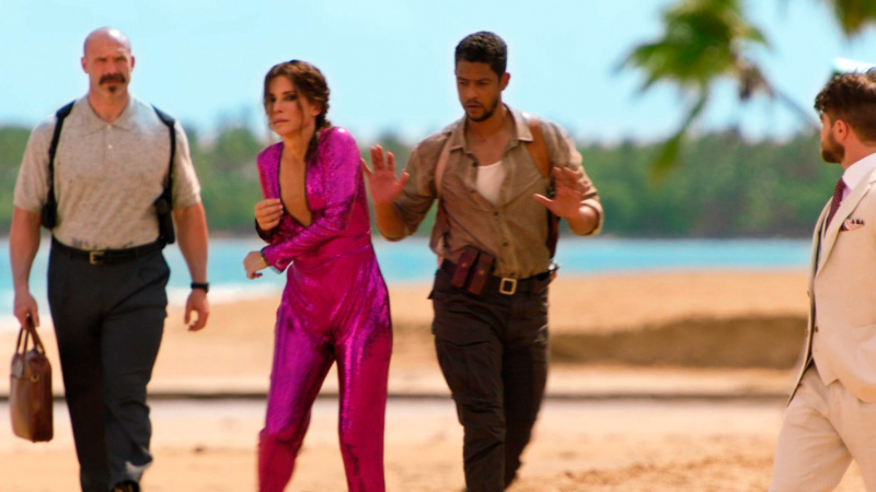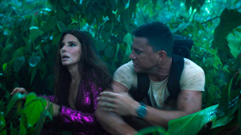 Сандра Буллок в роли Лоретты смотрится неплохо, но и только-то. Как-то это всё совершенно без огонька, как будто отрабатывая давно надоевшее выступление. При виде персонажа Тейтума у неё в глазах ничего не загорается, бегать по джунглям в комбезе с пайетками - штука утомительная, даже когда это происходит просто на фоне зелёного задника, а её нынешнее лицо, заботливо сконструированное страшно модным и страшно дорогущим пластическим хирургом, на крупных планах выглядит, скажем честно, несколько пугающим: нос - как у Майкла Джексона, а губы - как Джокера из первого "Бэтмена", и нас с Бубликом это, если честно, очень напрягает.