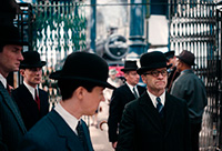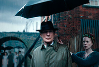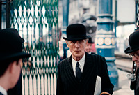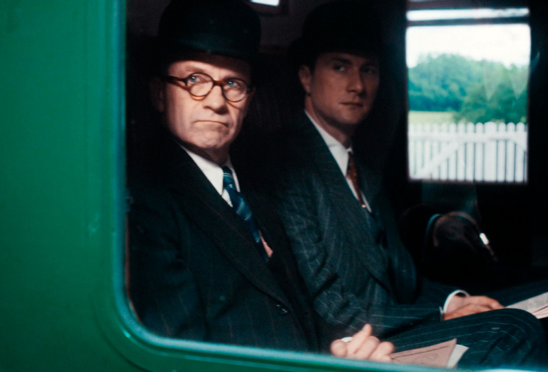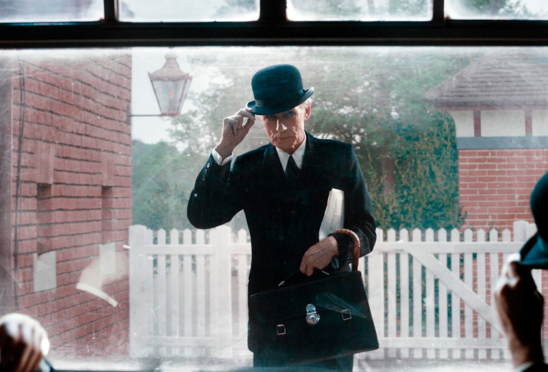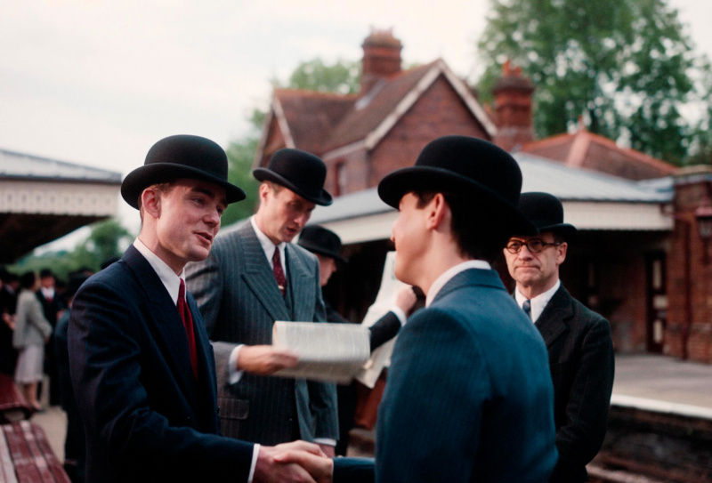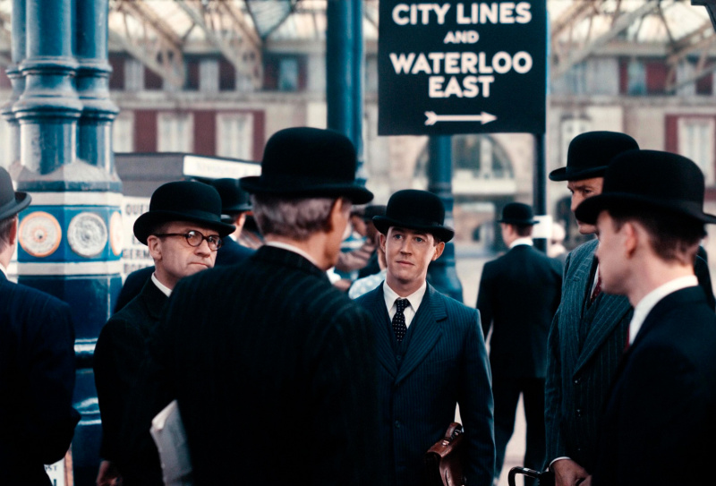 Кстати, о стиле. В этом фильме реально здорово воссоздана соответствующая эпоха, причем не только с точки зрения антуража, автомобилей, поездов, зданий, одежды и так далее, но и с точки зрения чисто кинематографического воплощения: в начале фильма приводятся реальные кадры Лондона тех лет, а позже делается намеренная стилизация самой картинки - обработка цветовой палитры, изменение формата кадра, использование соответствующих шрифтов и так далее. Это реально производит впечатление, потому что сделано отлично, и хорошо видно, что за этим стоит большая работа.